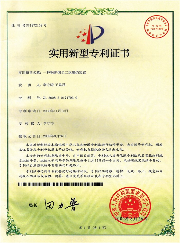 上一条:实用新型专利证书12